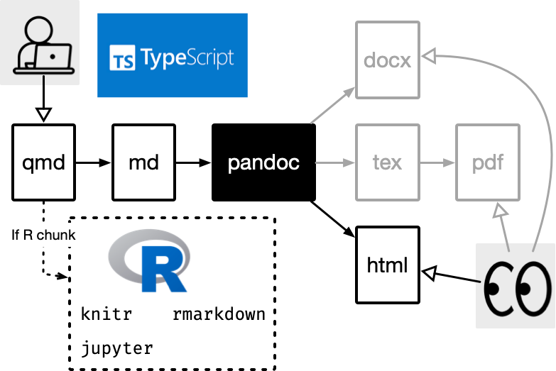 code in one source document with ability to render to many output formats (via Pandoc).R Markdown